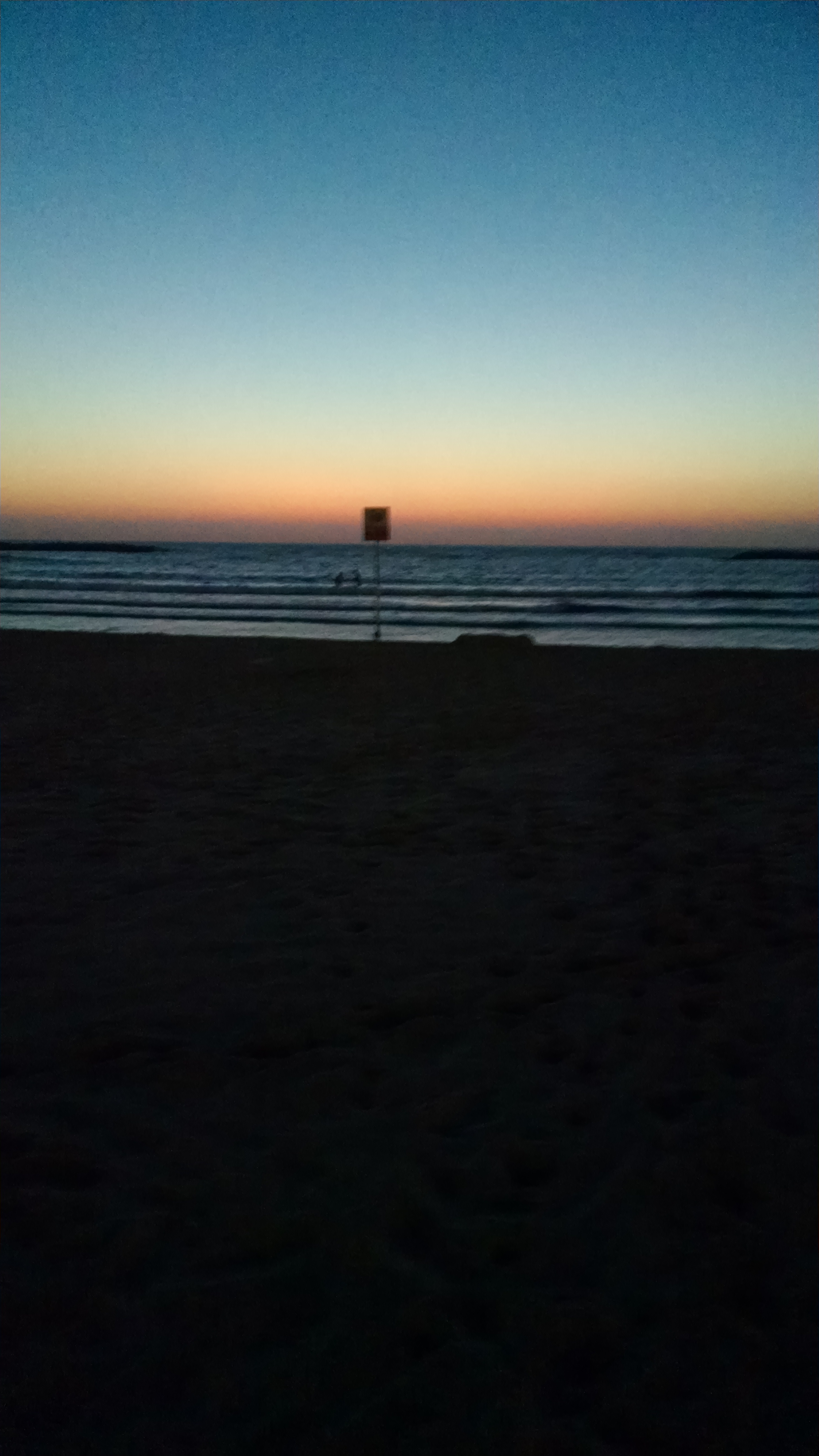 Immediately after checking in we quickly donned shorts and flops so we could rush the block and a half to the beach before all light was gone. Tonight is Rosh Chodesh and it feels like a new beginning! We wandered a short section and dipped our toes into the Mediterranean. Simply, beautiful.
