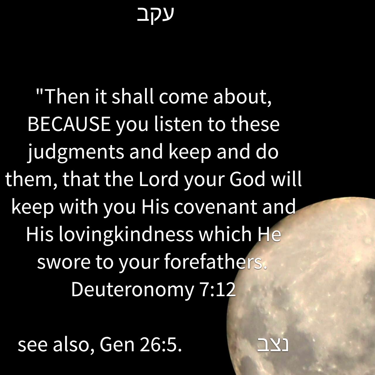 Ephraim and Rimona Frank’s Torah study notes this week focused on the word עקב ekev , meaning ‘because.’ The same word is used in Genesis 26:5…”because עקב Abraham kept…” The same letters mean ‘heel’ and are the root of Ya’acov, meaning ‘heel grasper.’