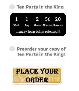 We also have the countdown to the 2 p.m. launch of Ten Parts in the King on Sunday, January 21, 2018 at M. Judson Booksellers in Greenville, SC. And, the countdown to the release and shipping of the book a week from tomorrow! (Graphic at left from tenpartsintheking.com.)